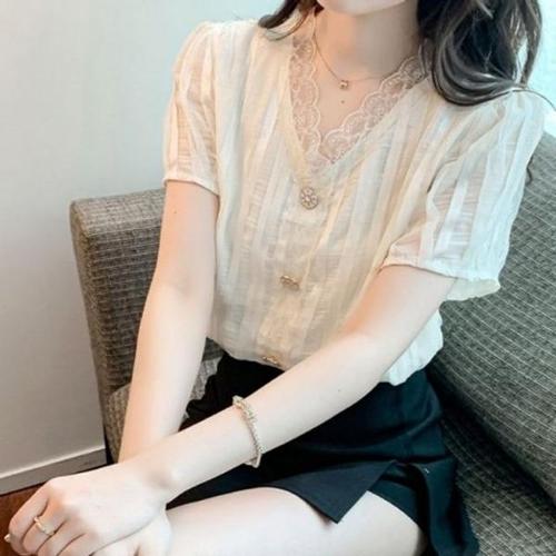 [엄지척]소매프릴 여름셔츠 레이스반팔블라우스_19644929_667501