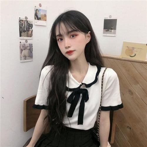 [엄지척]여성 귀여운 프릴 레이스 리본 포인트 반팔 티셔츠_19615243_667501