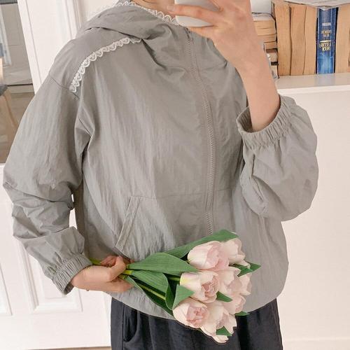[옷자락]여자 레이스 바람막이 후드집업 스트링 바스락 점퍼