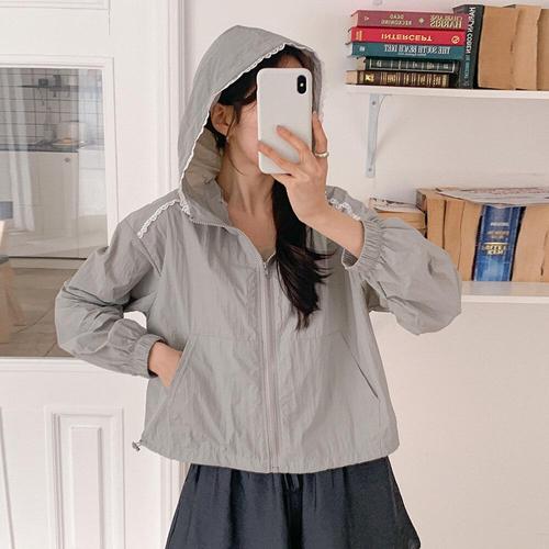 [유야]레이스 후드 바람막이 점퍼 자켓 -JK0098H- 여성 가을
