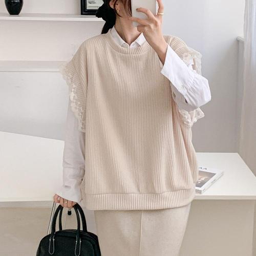 [옷자락]여자 리본 레이스 레이어드 골지 오버핏 라운드 조끼