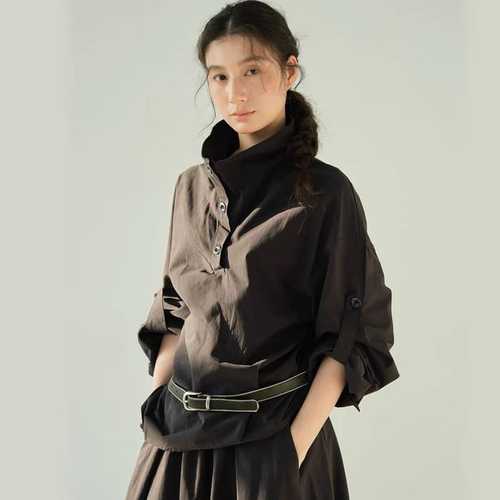 여성용 드레시 블라우스 심플하고 우아한 데일리 스타일리시 하이넥 레귤러 탑