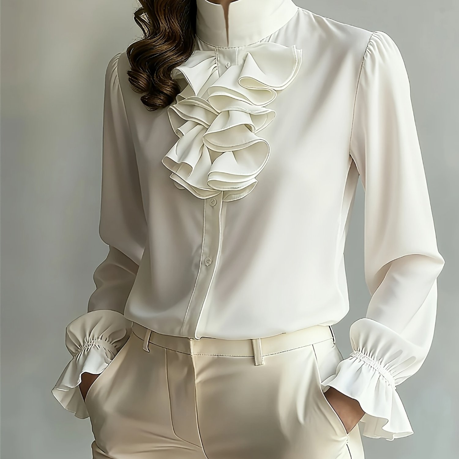 TEMU 여신 스타일 러플 쉬폰 블라우스, 엘리트를 위한 우아한 탑