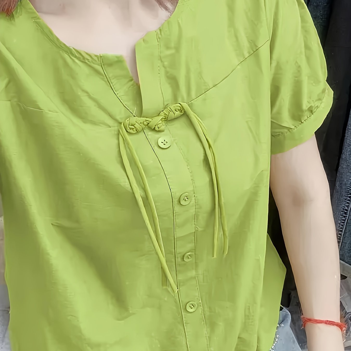 TEMU 신상 여름 컬렉션: 여성 중국 스타일 버튼 쉬폰 블라우스, 단색, 루즈핏 캐주얼,