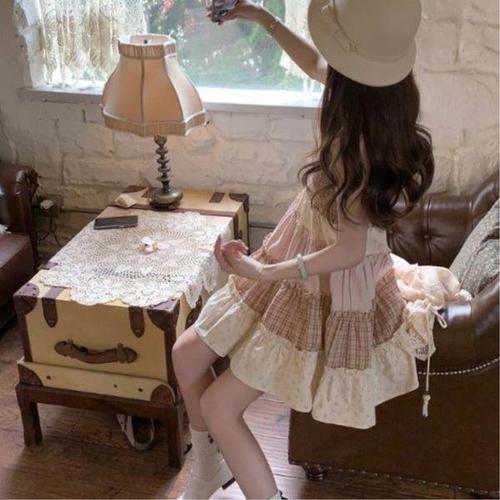 [다잇템]여성 쁘띠 레이스 티어드 면원단 잔주름 원피스