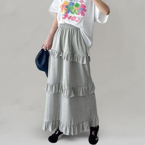 [다잇템_패션]여성 프릴 티어드 고무줄 귀여운 SS 롱스커트
