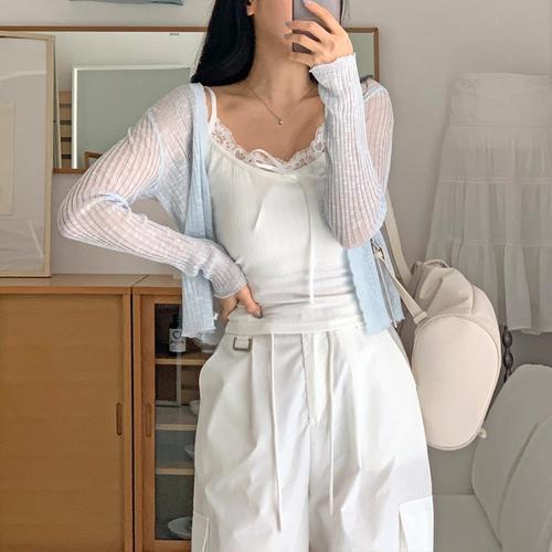 [옷자락]여자 셔링 나시티 반팔 캉캉 가디건 레이스 세트