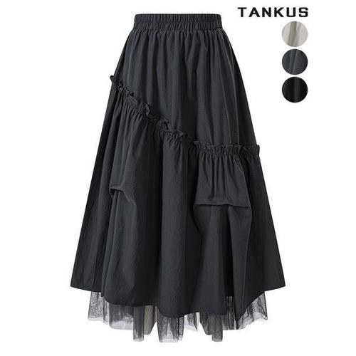 [탱커스]여성 밴딩 러플 레이스 롱 스커트