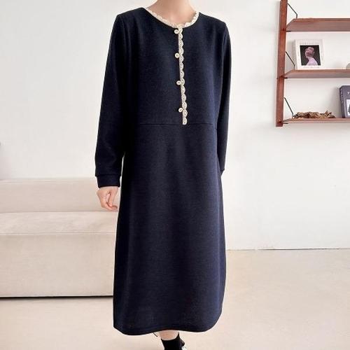 여자 레이스 겨울하객룩 단추 보온 큰사이즈 롱원피스