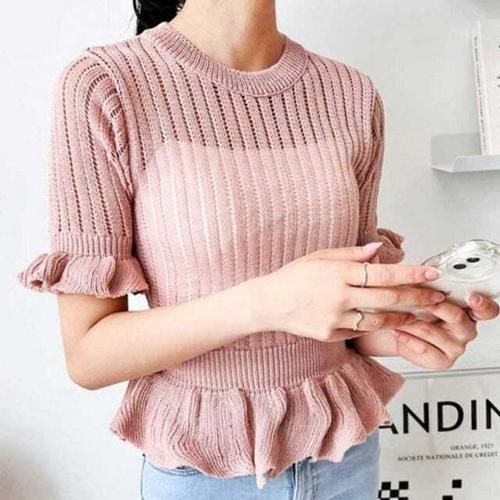 [셀럽하우스]밑단 MQAX9532 소매 추천 프릴 디테일 여자 여름용 반팔 니트웨