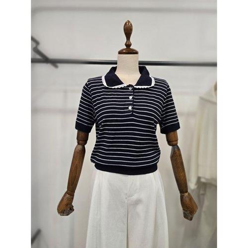 갤러리아_LAP 레이스장식카라 스트라이프반팔니트 AS7XG176