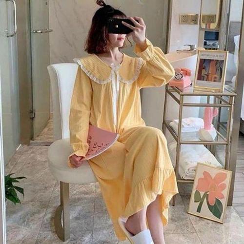 [셀러허브_여성트랜드패션]여성 잠옷 원피스 카라 레이스 수면 프릴 홈웨어 리본