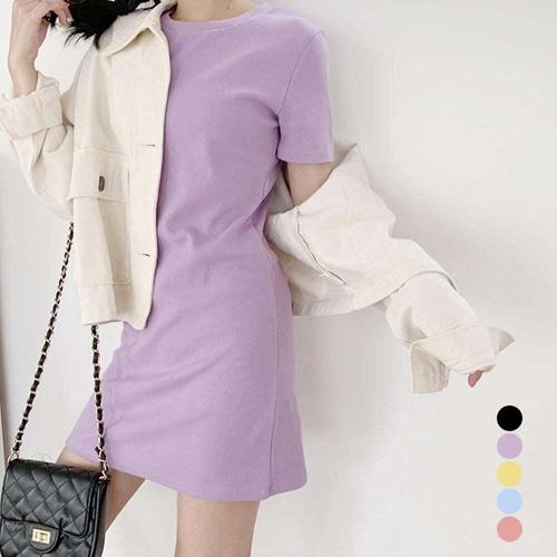 [셀럽하우스]파스텔 PNQD7663 컬라 반팔 미니원피스 URD078 레이어드 미니