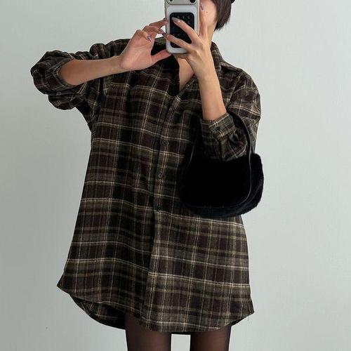 [신상오픈런]여성 체크 미니 원피스 레이어드 플레어 셔츠 드레스