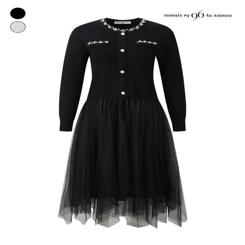 [나인식스뉴욕]쉬폰 레이스 레이어드 진주 골지 원피스 (NPAOP001M0)