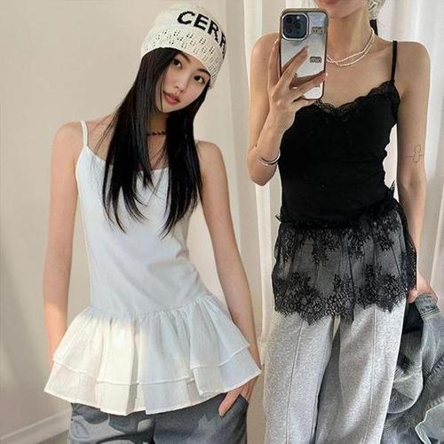 [셀러허브_여성트랜드패션]여자 끈나시 프릴나시 2종 레이어드 이너 민소매티 나시티 레이스