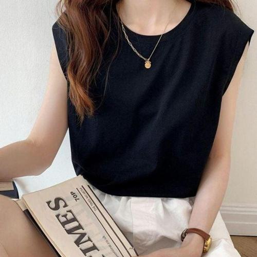 [셀러허브_여성트랜드패션]여자 루즈핏 민소매 캡소매 나시티 레이어드티 티셔츠