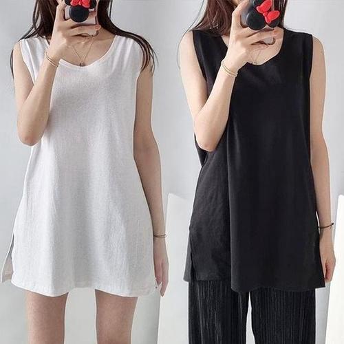 [셀러허브_여성트랜드패션]롱티셔츠 이너나시 K965 레이어드 66-120 민소매 여성민소매나시 20수 오버핏 ..