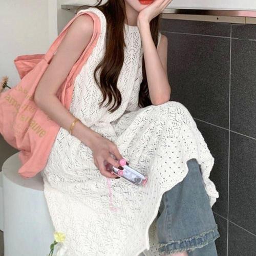 레이어드 민소매 겸용 롱조끼 트임 레이스 원피스 WFLPTMG