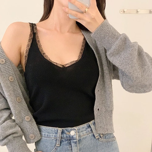 플러리싱 / 레이스 이너 레이어드 니트 나시 플러리싱