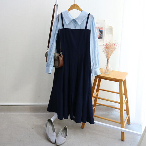 레이츄 / 하나 카라 블라우스 레이어드 뷔스티에 롱원피스