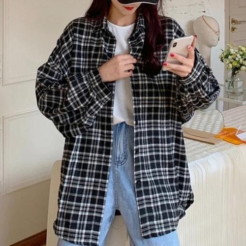 [엄지척]여성 체크 가을 셔츠 간절기 상의 가벼운 레이어드_19660514_667501