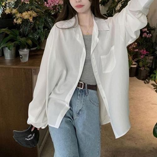 [엄지척]여성 베이직 디자인 무지 루즈핏 레이어드 셔츠 남방_19660442_667501