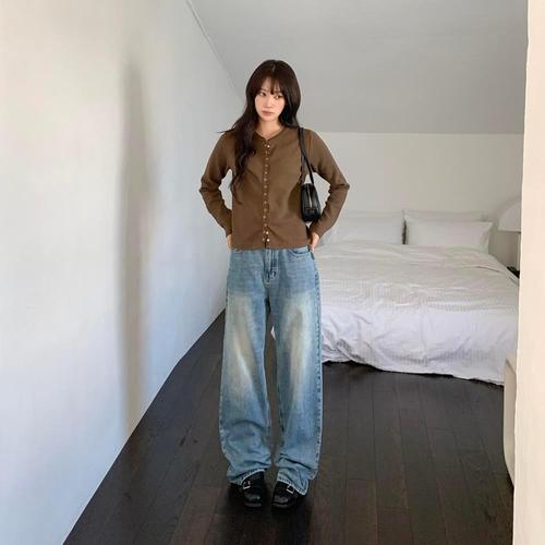 뜨개진 여성용 레이온 쫀쫀 골지 소매버튼 가디건 벤자민 가디건