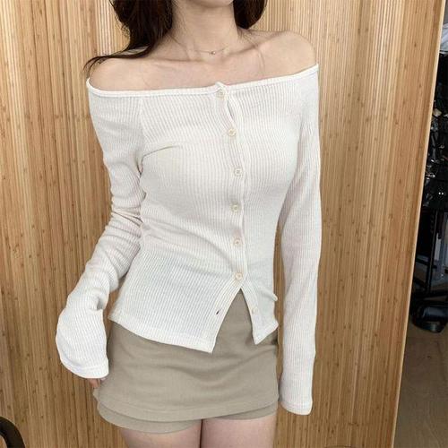 [다잇템]여자 슬림핏 롱슬리브 레이온 보트넥 가디건