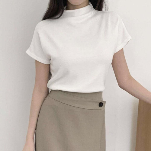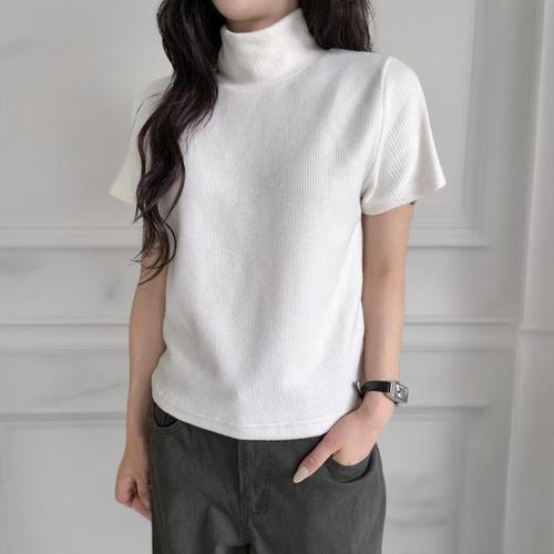 [옷자락]여성 레이온 스판 하이넥 기본 컬러 반팔 티셔츠