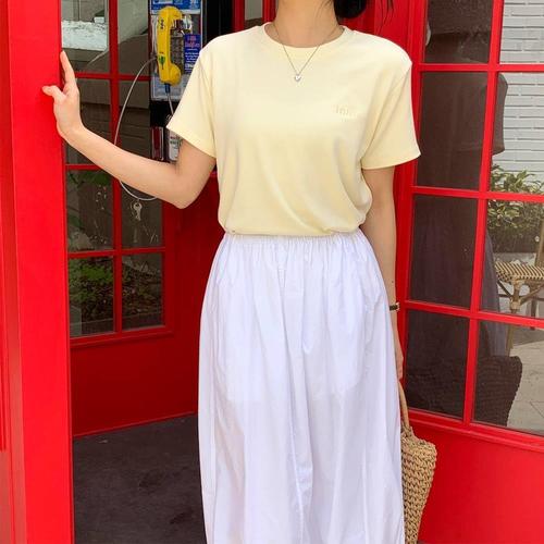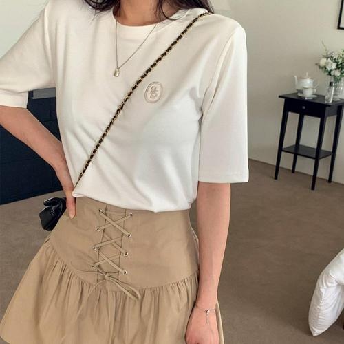 [옷자락]여성 심플 레이온스판 자수 레터링 반팔티