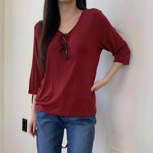 [미라클세븐]여성용 데일리 무지 컬러 레이온 스판 루즈핏 8부 티셔츠