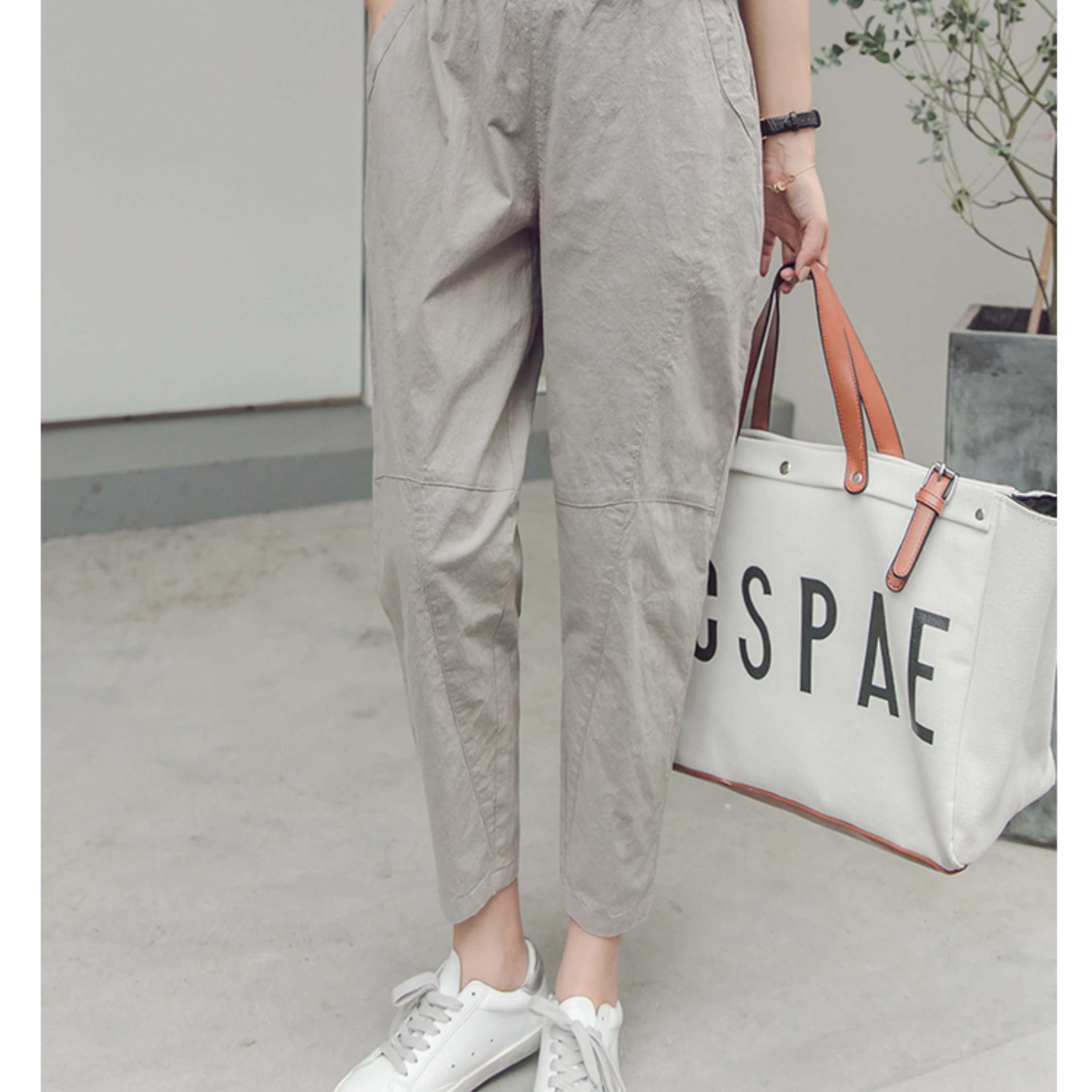 TEMU 2025 가을 신상 바지 여자 9부 면 마 바지 날씬해 보이는 작은 발 배기 바지 캐주얼 바지 여자 한국인이 많이 구매한
