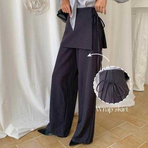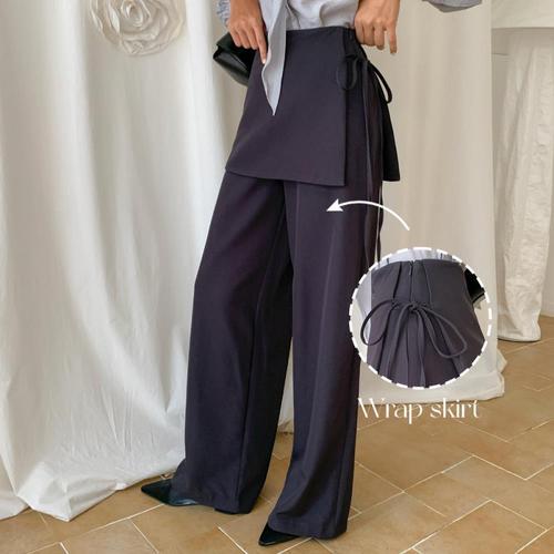 [옷자락]여성 레이온 레이어드 와이드 랩 스커트 슬랙스