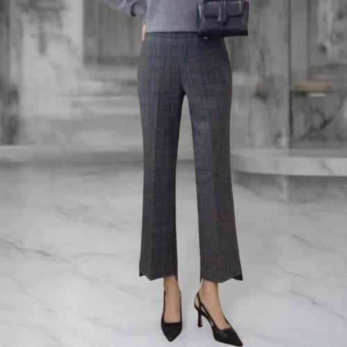 [다잇템][다잇템] 여성 H라인 FW 뒤밴딩 신축성 언발 레이온 격자 슬랙스_22868931_588872