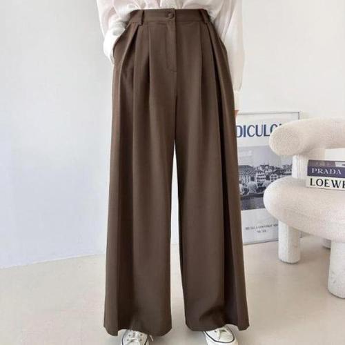 여자 심플 레이온 스판 뒷밴딩 핀턱 와이드 슬랙스