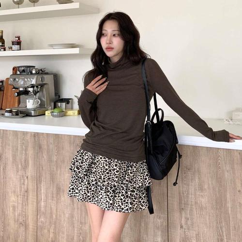 [옷자락] 여성 면 레이온 기모 슬림핏 목폴라 긴팔 티셔츠