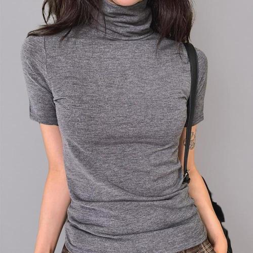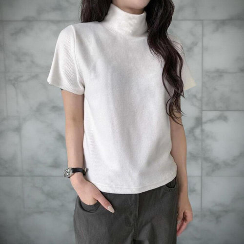 [다잇템]여성 있는 신축성 레이온 반소매 폴라티셔츠