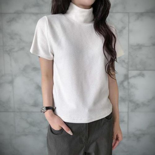 [옷자락] 여성 심플 레이온 스판 골지 기모 폴라 티셔츠 반팔