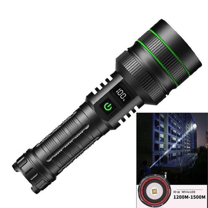 슈퍼 브라이트 화이트 레이저 LED 줌 손전등 내장 배터리 USB 충전식 전원 디스플레이 야외 캠핑 하이킹 토치