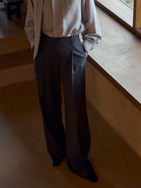 [라메레이] 벨티드 원턱 팬츠_그레이