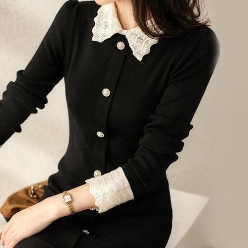 [브이와이][VY] 여자 레이스카라 진주단추 나들이 봄가을 원피스_15983688_588847
