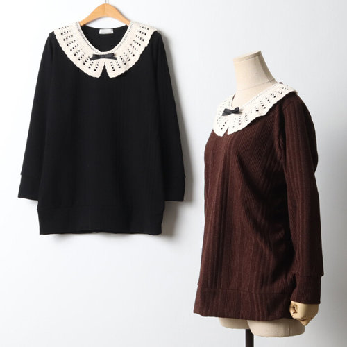 나야홍 / 빅사이즈 511 레이스넥긴팔티셔츠 DOLJ510