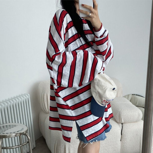 레이츄 / 올뉴 스트라이프 오버핏 박스 얇은 긴팔 티셔츠