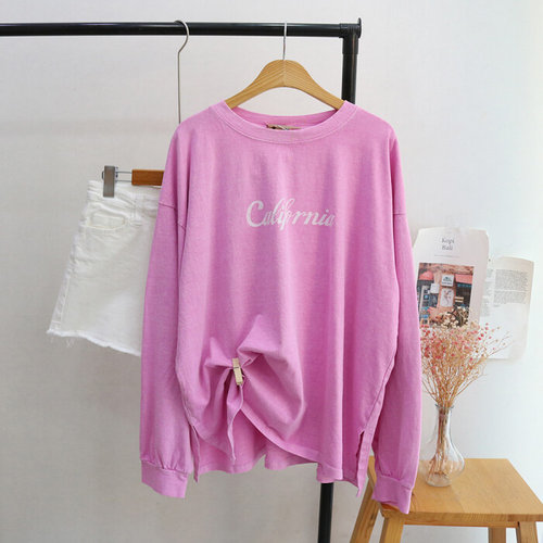 레이츄 / 캘리 레터링 피그먼트 루즈핏 얇은 긴팔 티셔츠