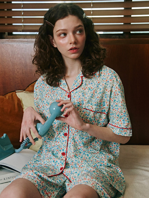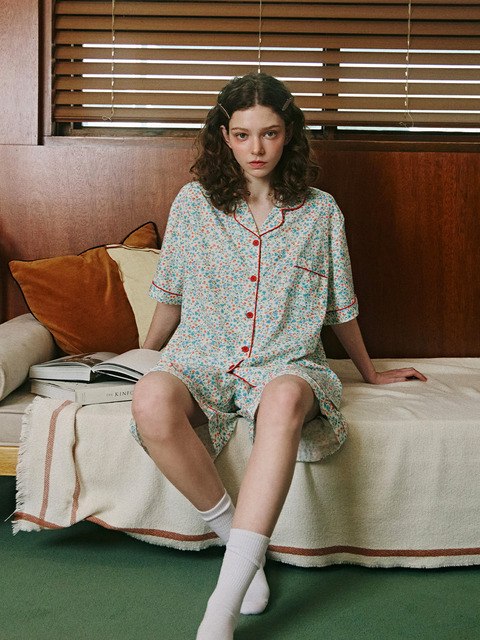 쉬블림로브 (반팔+반바지) 여성 홈웨어 플라워 패턴 잠옷 세트 GGWD0240