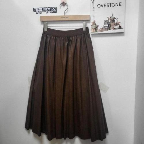 [유야]여성 레자 가죽 밴딩 플레어 롱 스커트 -FSK0115- 봄 가을