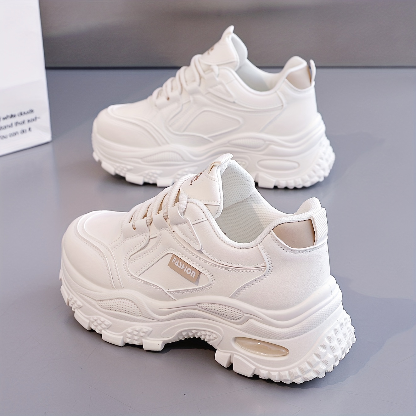 TEMU 여성용 리프트 플랫폼 스니커즈 - 두꺼운 밑창으로 키 높이 효과, 가볍고 통기성 좋은 레이스업 신발, TPR 쿠션 & 내구성 - 캐주얼 스니커즈, 사무실, 일상용 (북미/유럽), 여성 신발