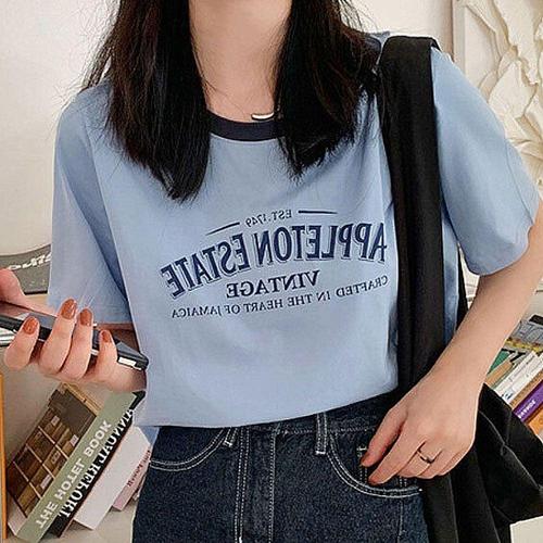커플을 위한 새로운 유행 프린트 트렌디 티셔츠, 루즈한 레터링, 라운드넥 캐주얼하고 다재다능한 반팔, 알로 로고