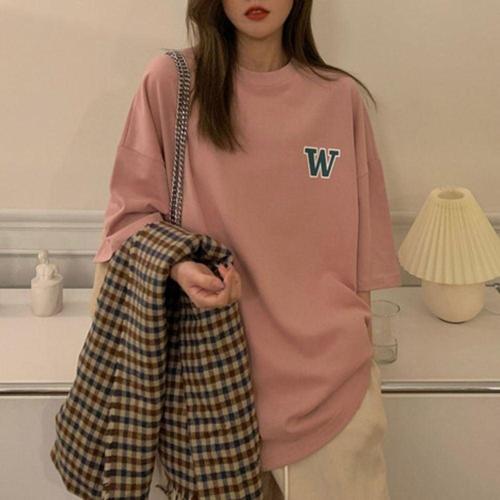 레터링 롱원피스 꾸안꾸패션 루즈핏 여자 반팔티 WFKPD5U
